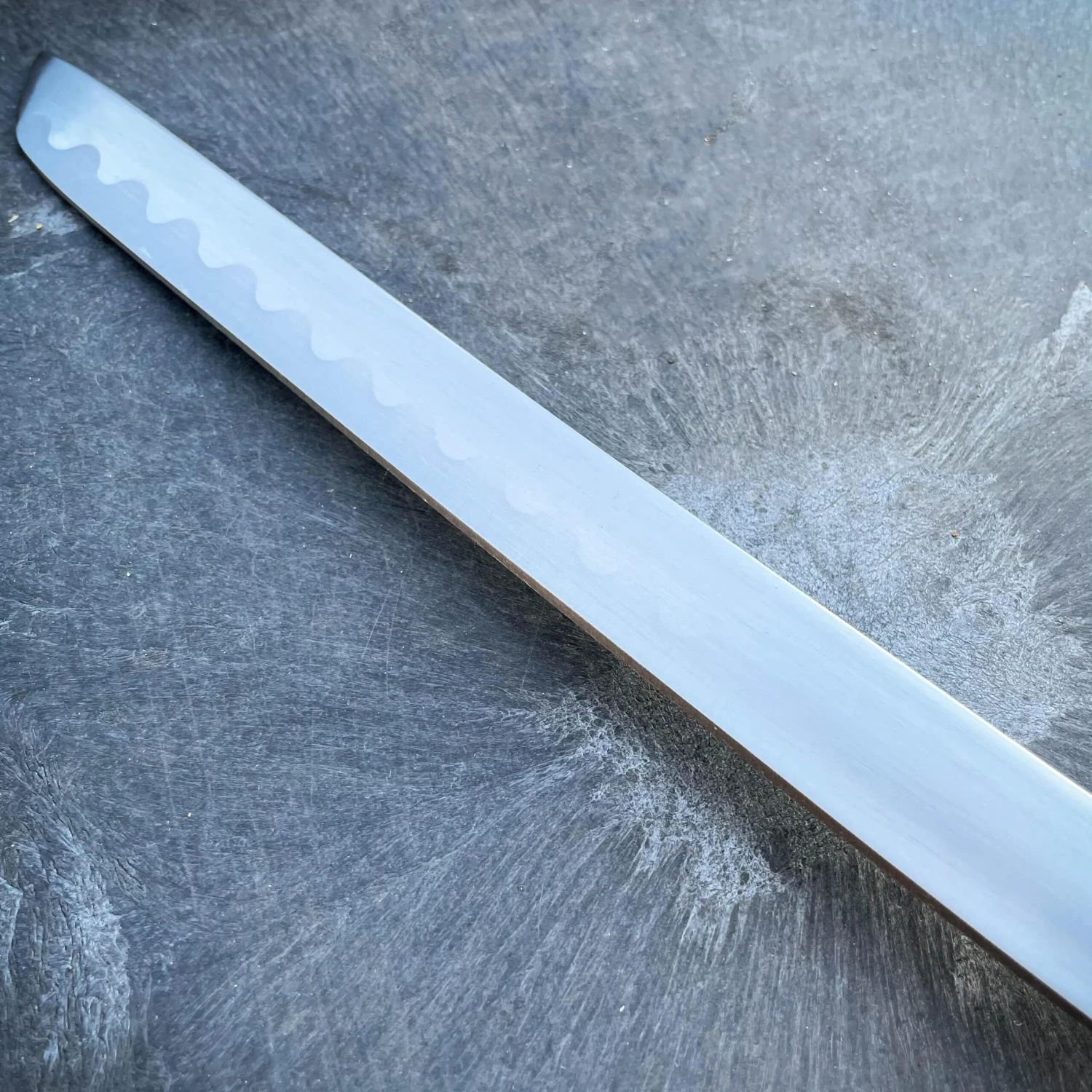 - 20.65-Inch Carbon Steel Blade w/ Japanese Writing Etched Into It