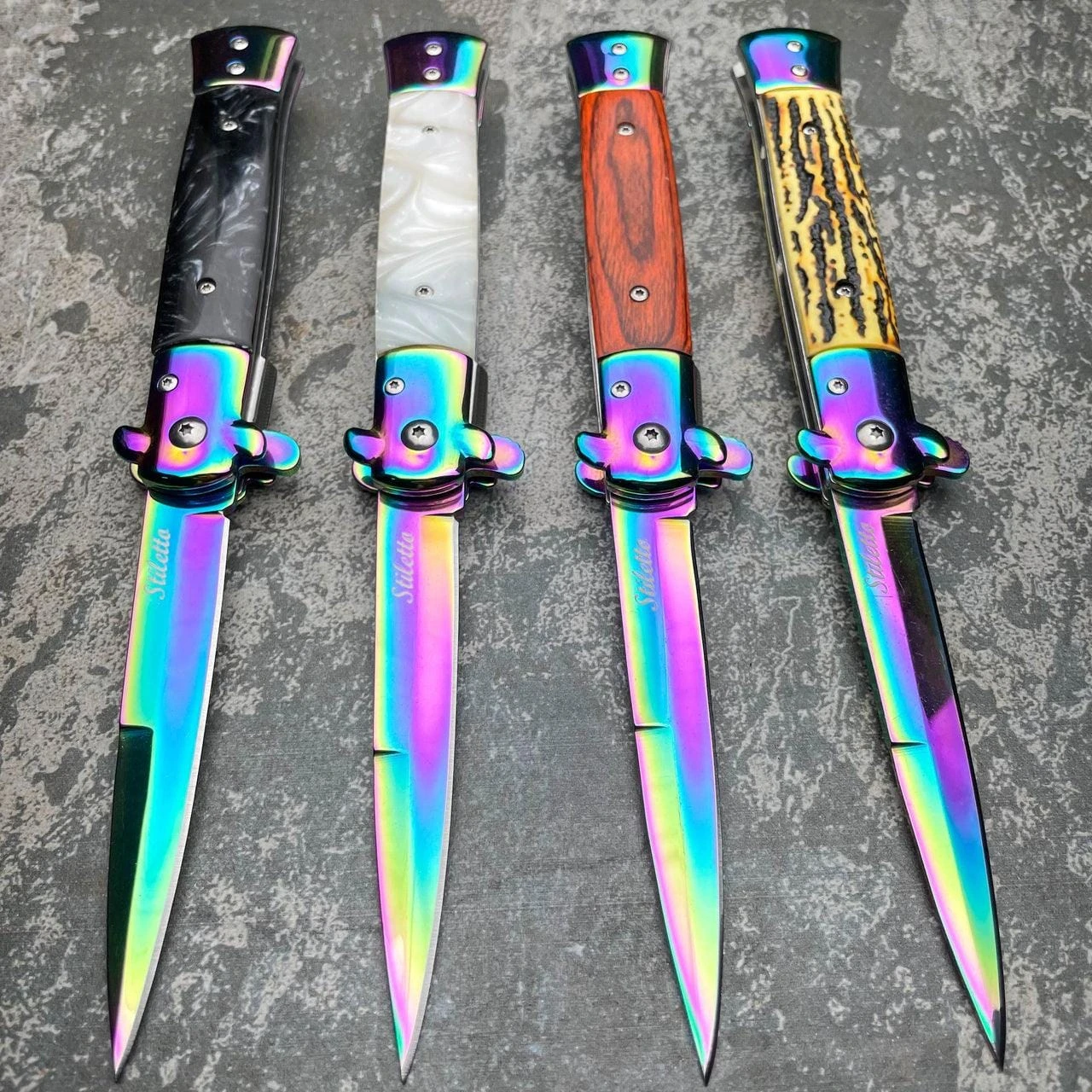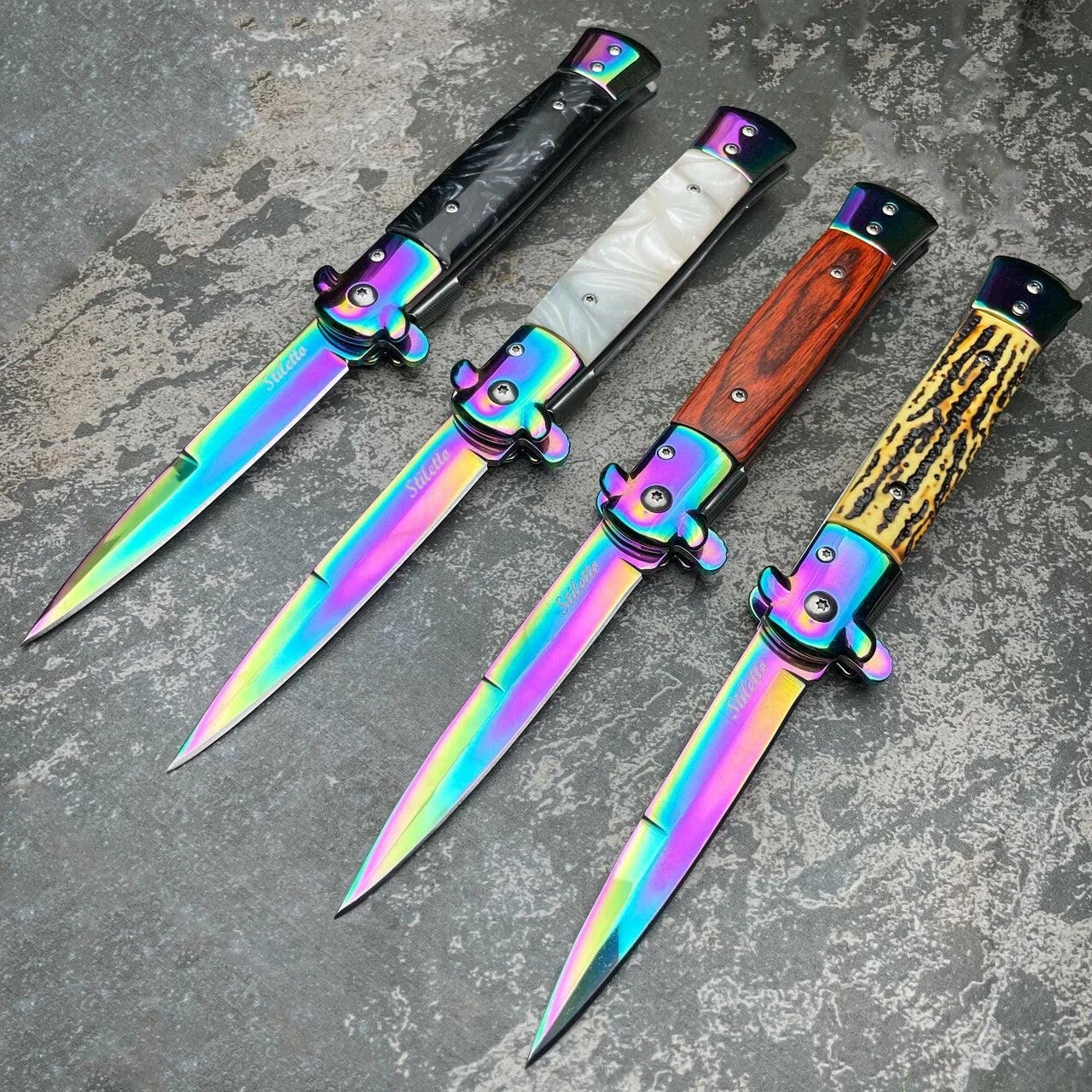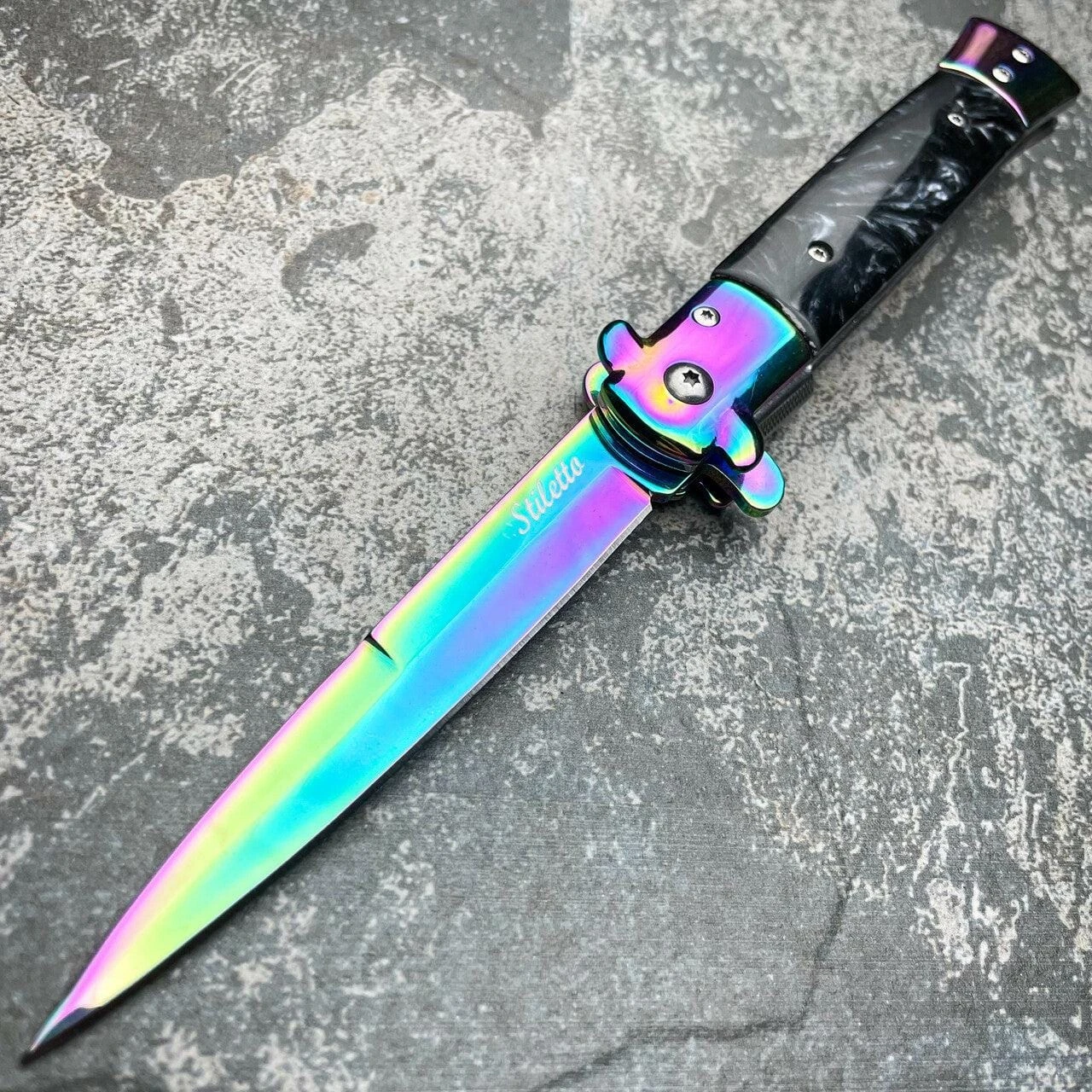Be the first to review “9″ Italian Style Rainbow Spring Assisted Open Folding Stiletto Pocket Knife” Cancel reply