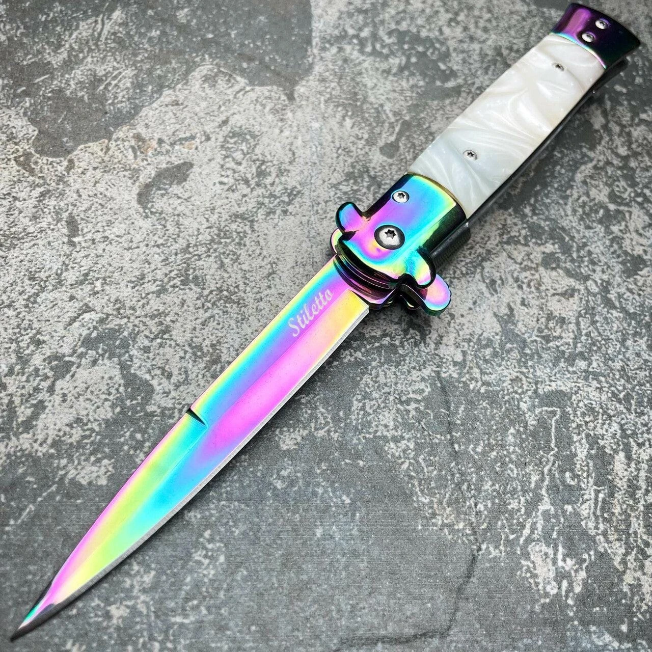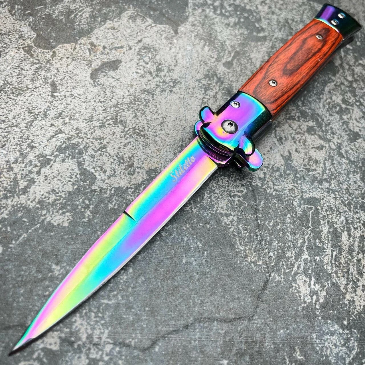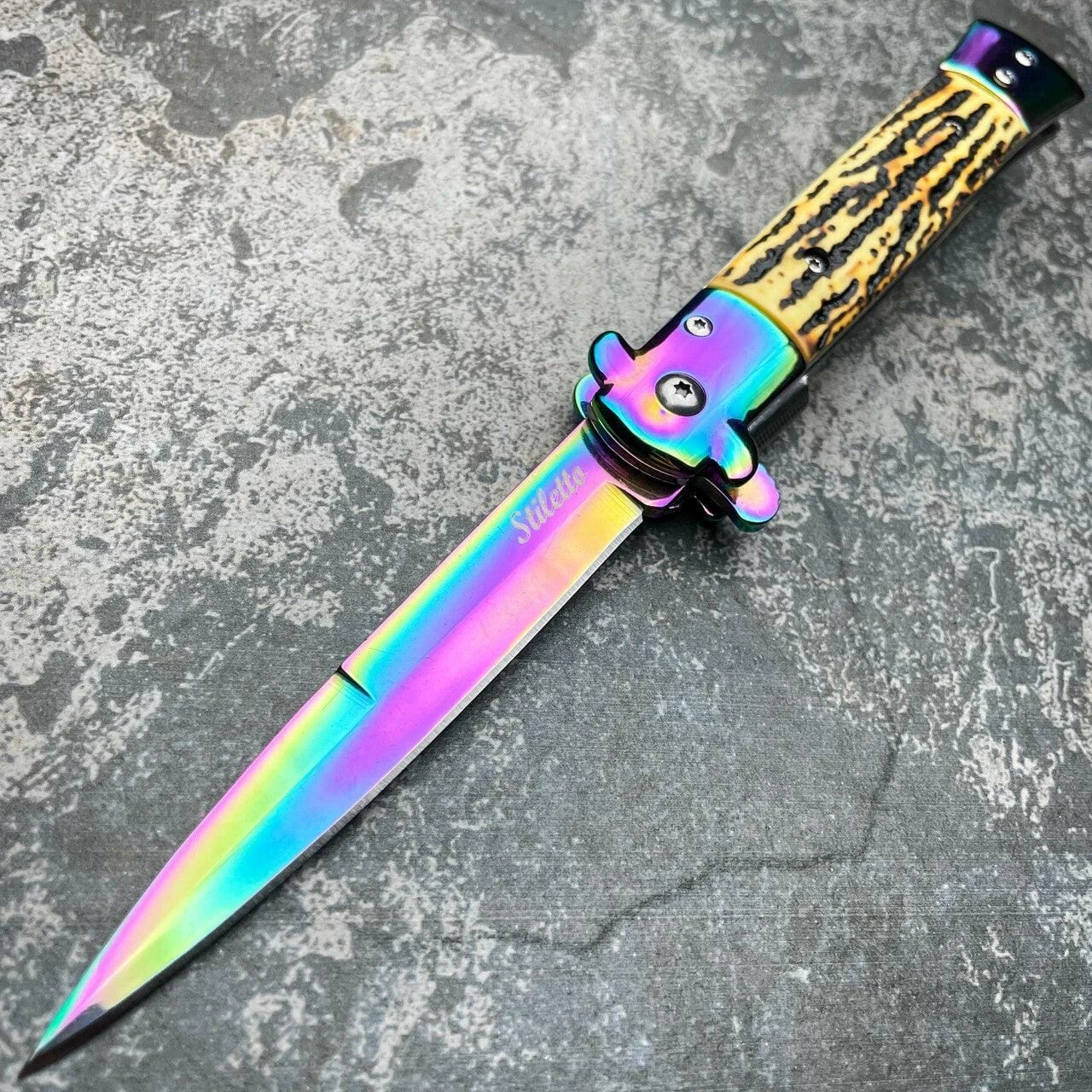 Be the first to review “9″ Italian Style Rainbow Spring Assisted Open Folding Stiletto Pocket Knife” Cancel reply