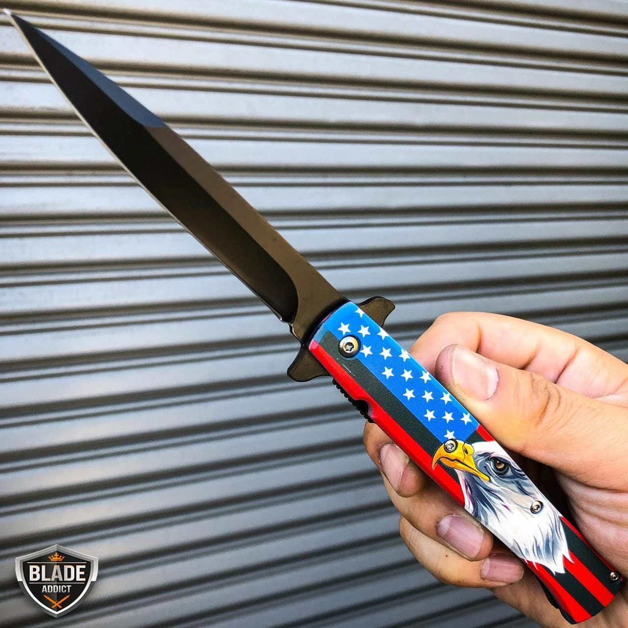 Be the first to review “9″ Stiletto Eagle American Flag Spring Assisted Folding Pocket Knife” Cancel reply