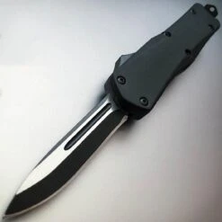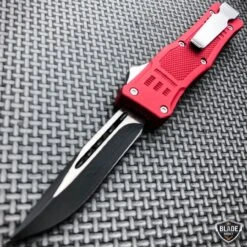 The knuckle OTF is one of the toughest knives we carry. It is a double action OTF knife with 440 stainless steel blade. The knuckle handle is full aluminum zinc alloy that includes a pocket clip and glass breaker stub.