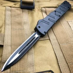 The Infiltrator OTF is a tactical knife that is ready for any situation. It can be quickly deployed with the ambidextrous sliding button. Push forward on the button to open and pull it back to retract back into the handle.