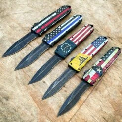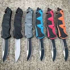 Built to last and comes with a 3.5″ inch 440C blade that are sharp and ready to cut right out of the box. The smooth ergonomic handles are made of high-quality Zinc Alloy with rubber textured coating. The button placement along the spine of the handle allows for lighting fast ambidextrous openings right from the operators pocket. Includes a pocket clip and battle ready glass breaker pommel.