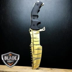 Tiger Tooth Tactical CSGO Huntsmen Survival Knife! With this knife in hand, no one will dare want to mess with you. Black G10 Handle with Aggressive blade