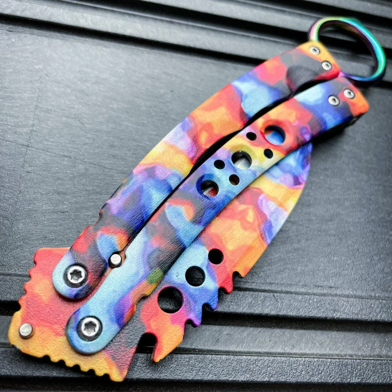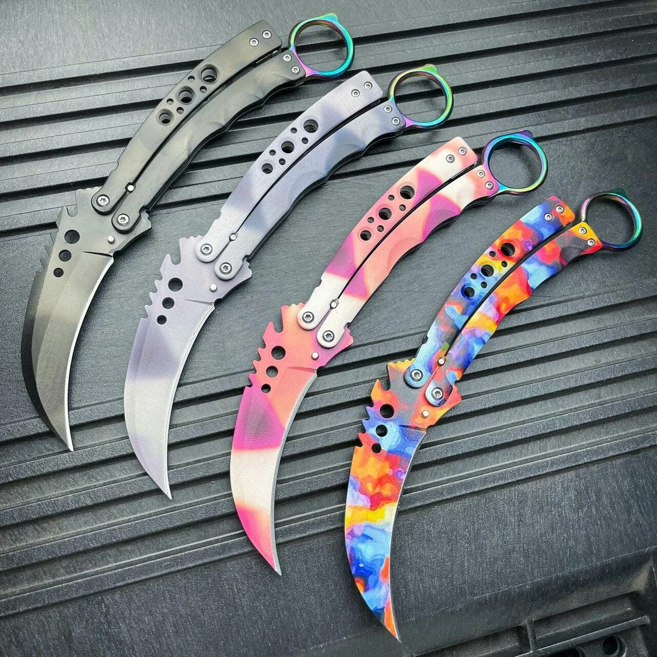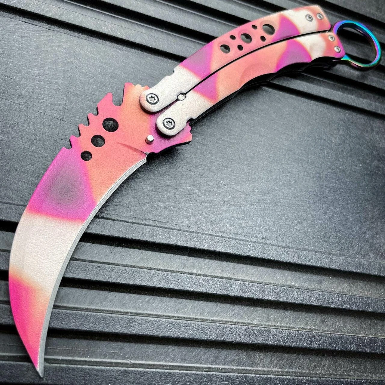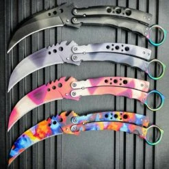 Sleek and well balanced. This one of a kind mixture of a butterfly knife with a karambit style blade is guaranteed not to disappoint. This exclusive design you won’t find anywhere else and is sure to sell out fast. Limited quantities available.