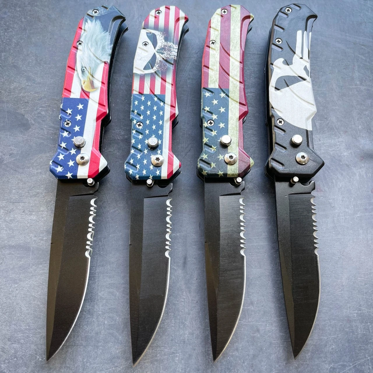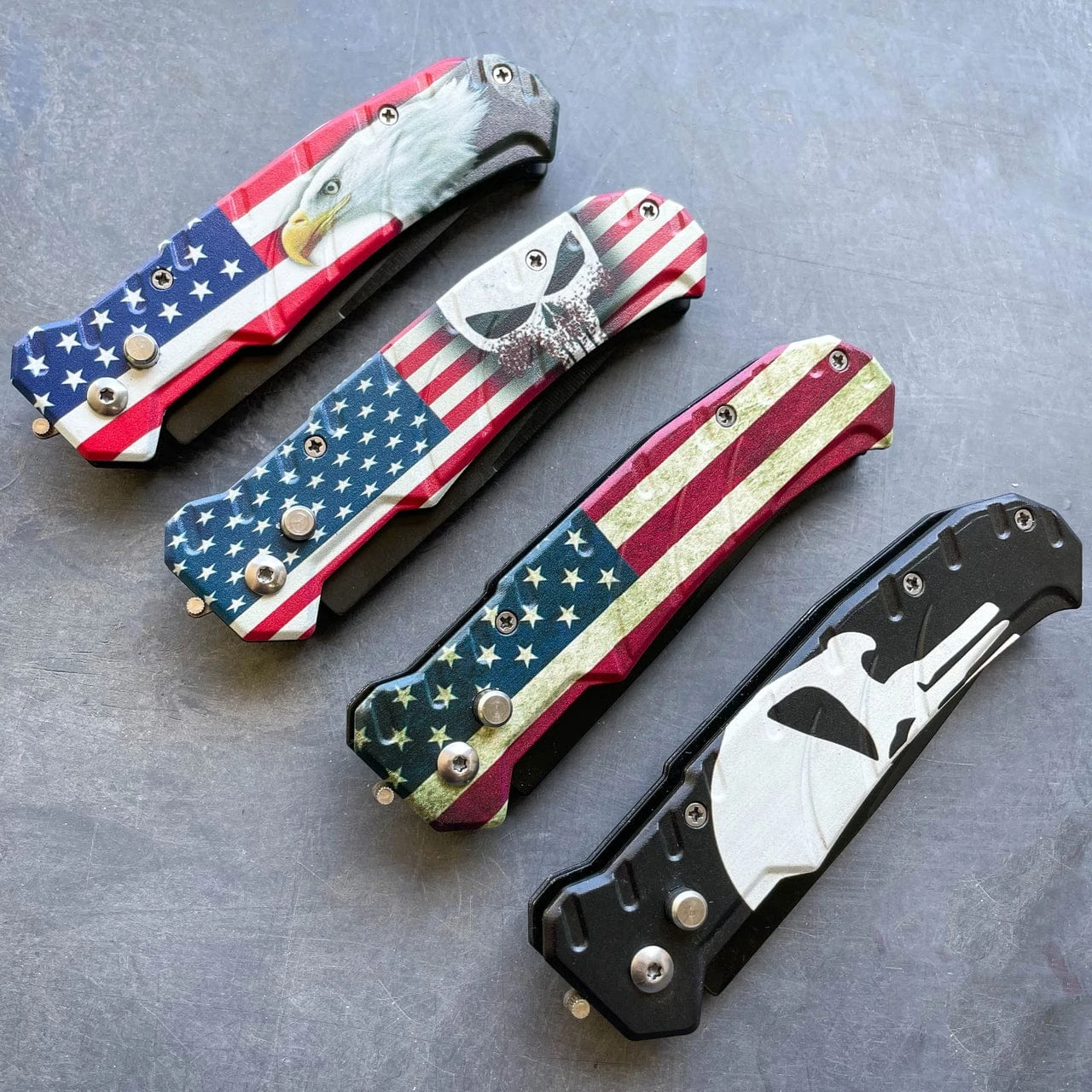 | Color | USA FLAG, USA FLAG EAGLE, USA FLAG SKULL, BLACK w/ SKULL |