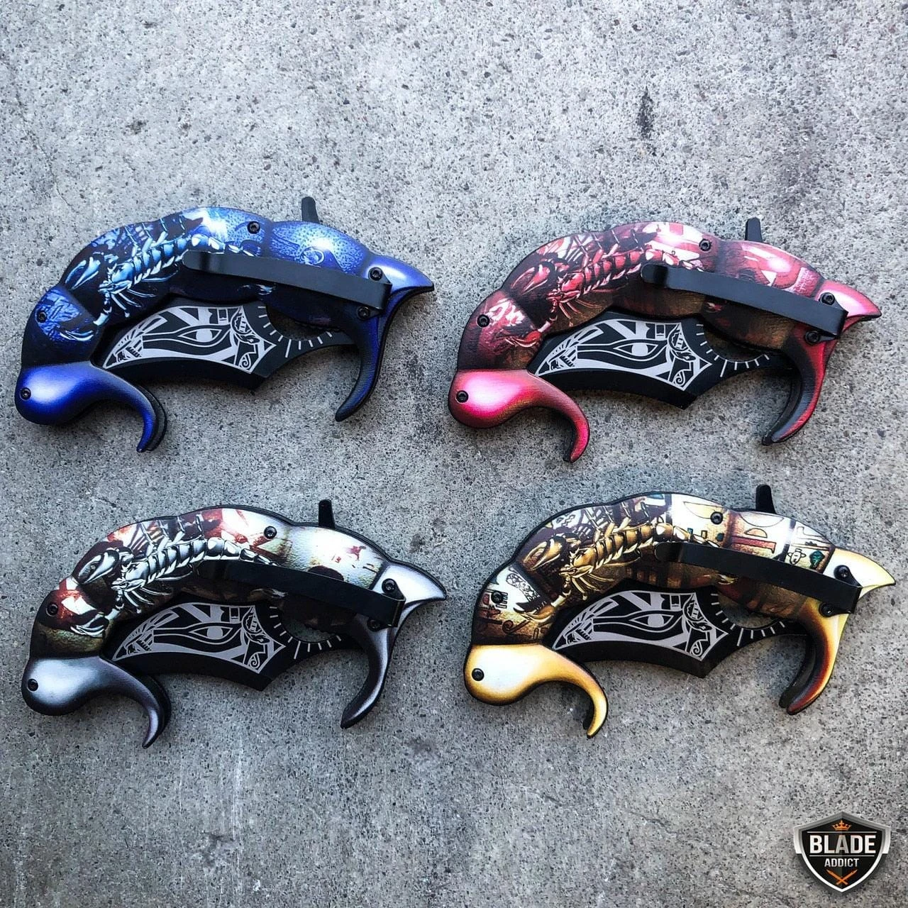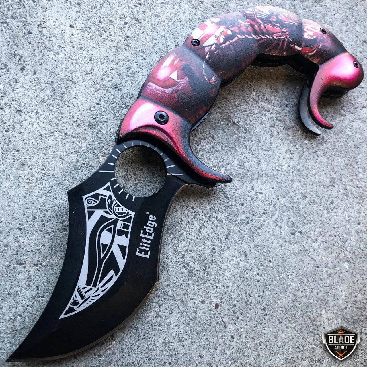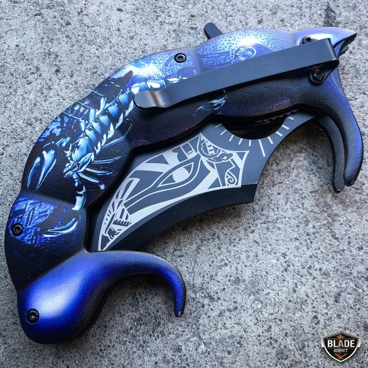 This fantasy pocket knife feels like a beast in your hand! Massive 8.5″ when it’s open and a solid, beefy construction. Add this to your collection or carry it everyday to show off. It can be quickly deployed with the spring assisted opening mechanism, using the flipper.
