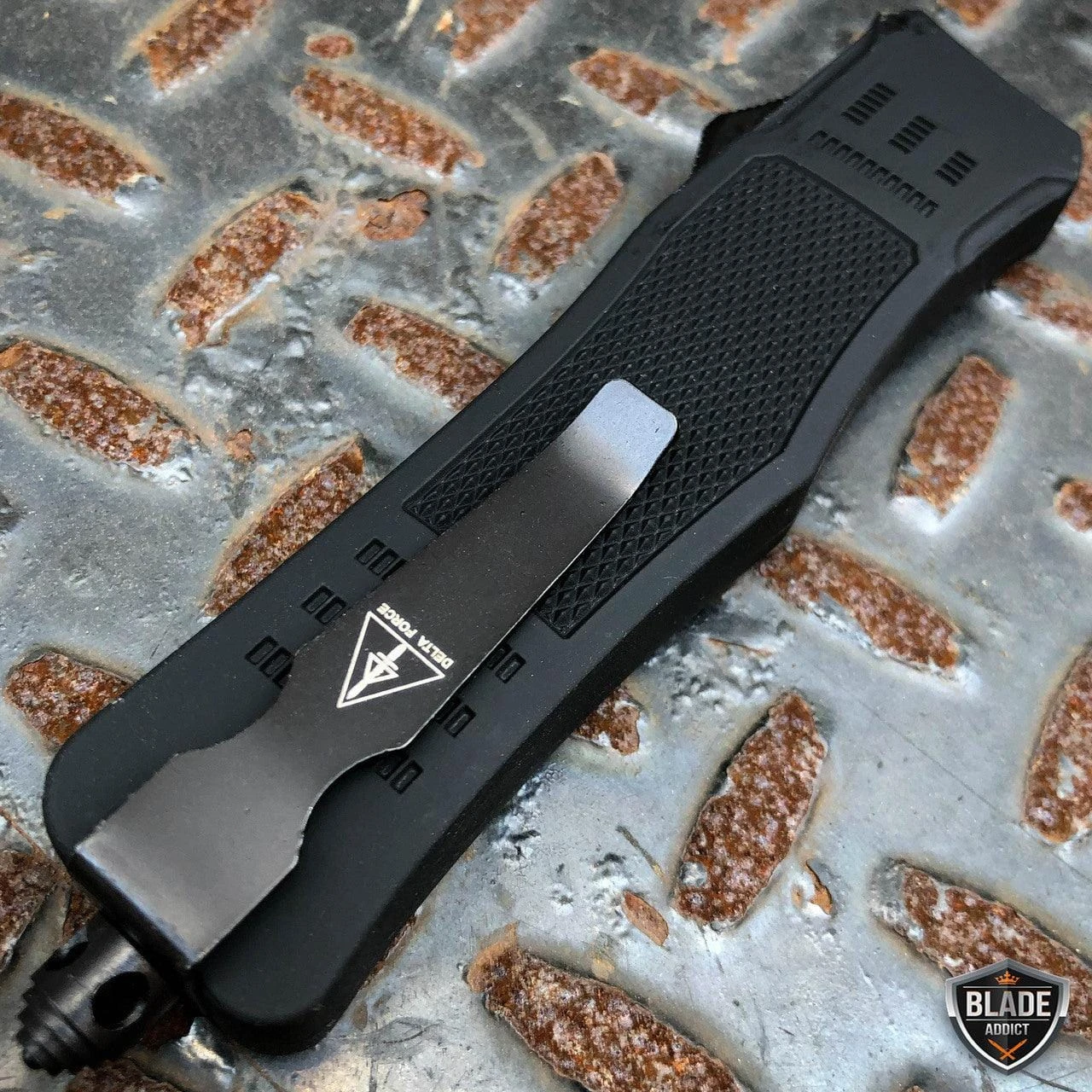 Our OTFs are built to endure hard use. The knife comes with a 3″ Inch 440C stainless steel blade and is sharp out of the box. The heavy duty rubberized coated handles are made of high quality Zinc alloy. The OTF is easy to open and close with its button placed on the spine of the handle for any left or right hand users.