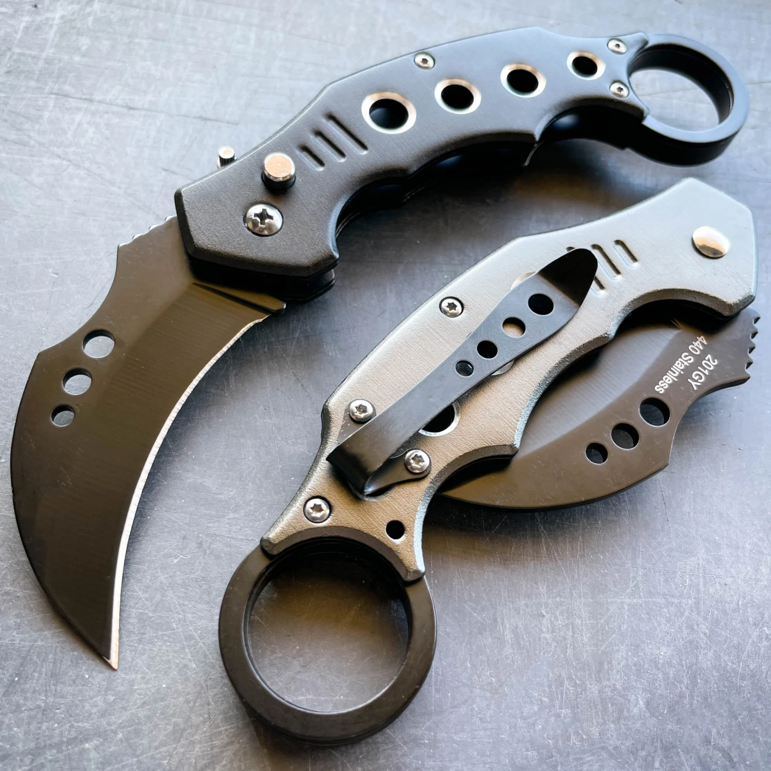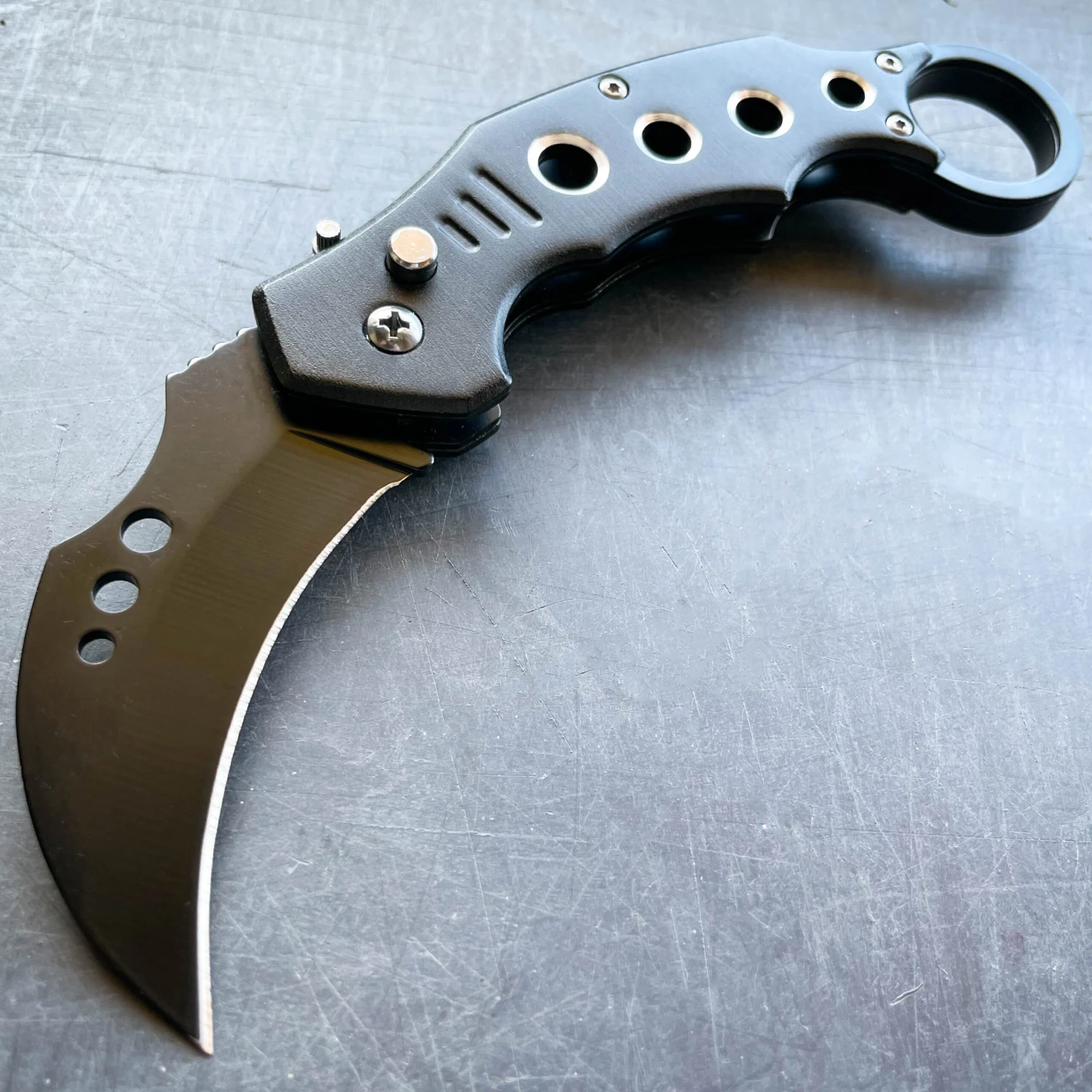 Introducing our 7 inch Push Button Automatic Folding Karambit with Safety Lock, a versatile and powerful knife designed for everyday carry and outdoor activities.