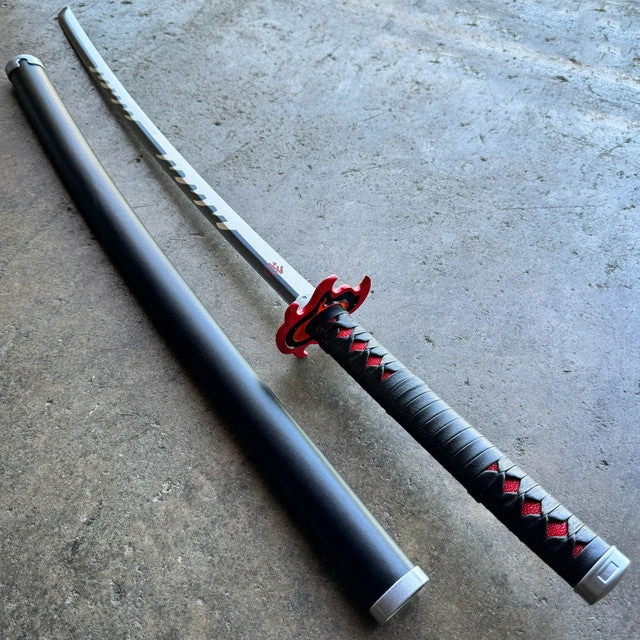 - The tanjiro kamado’s sword is made of 440 stainless steel, it features a flame tsuba, black scabbard, black cord handle with red ray-skin wrap and alloy fittings.